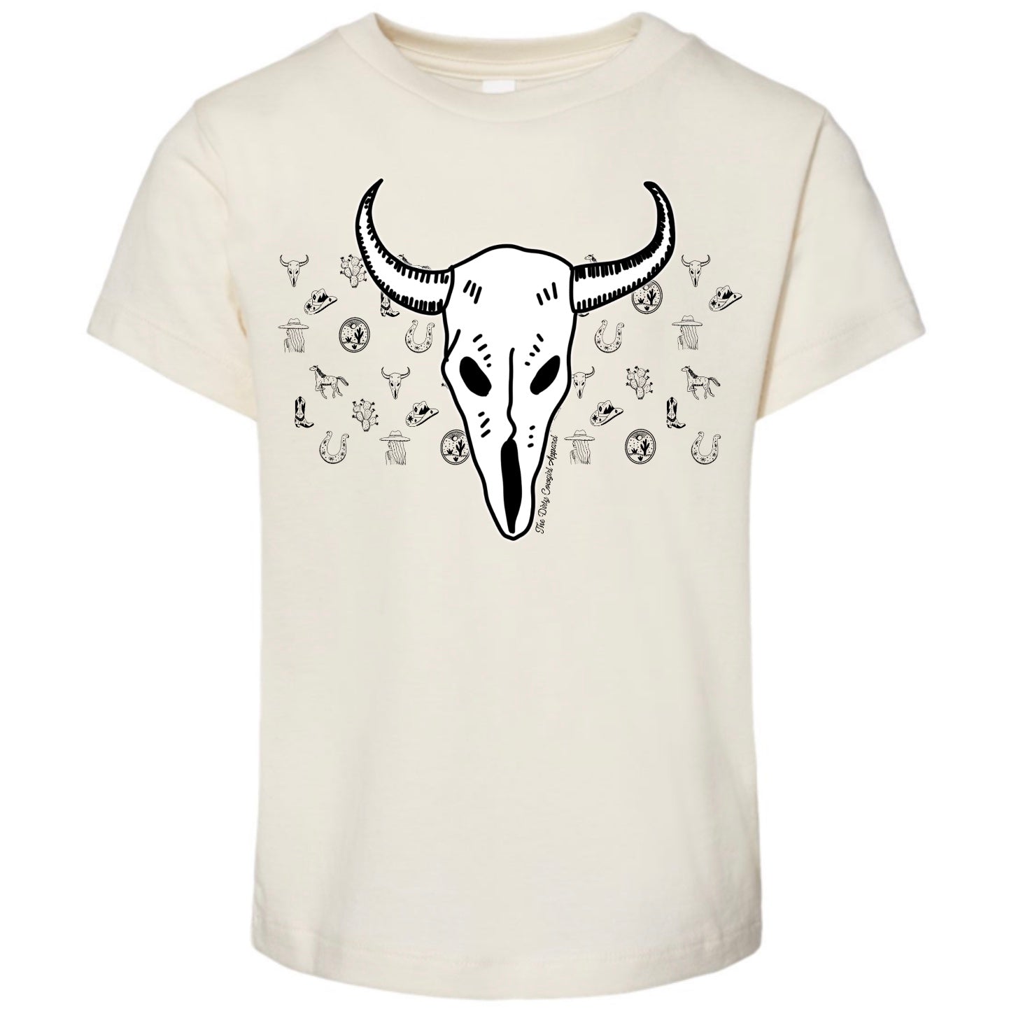 The Bison is one of the most commonly known Western Icons.. this rustic bison skull will give some edgy western flair to your kiddos closet for sure! Add this tee to your little cowboy or cowgirl’s collection today!