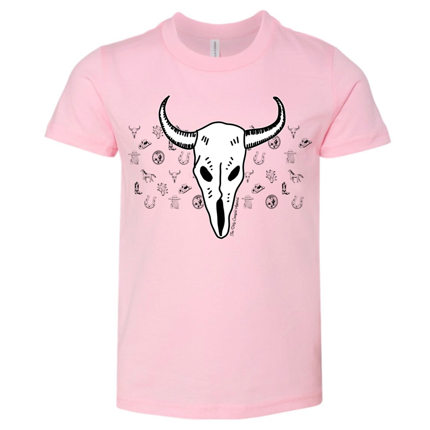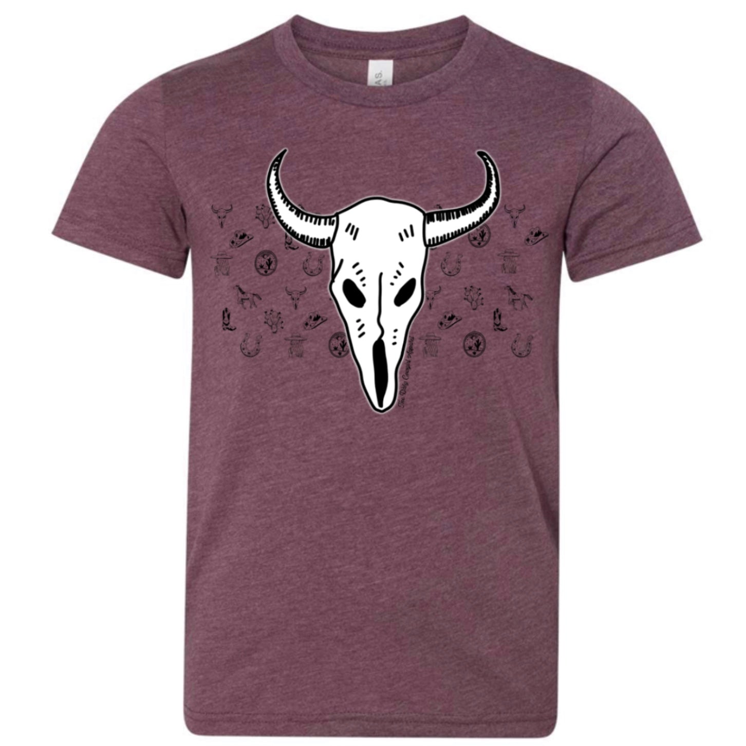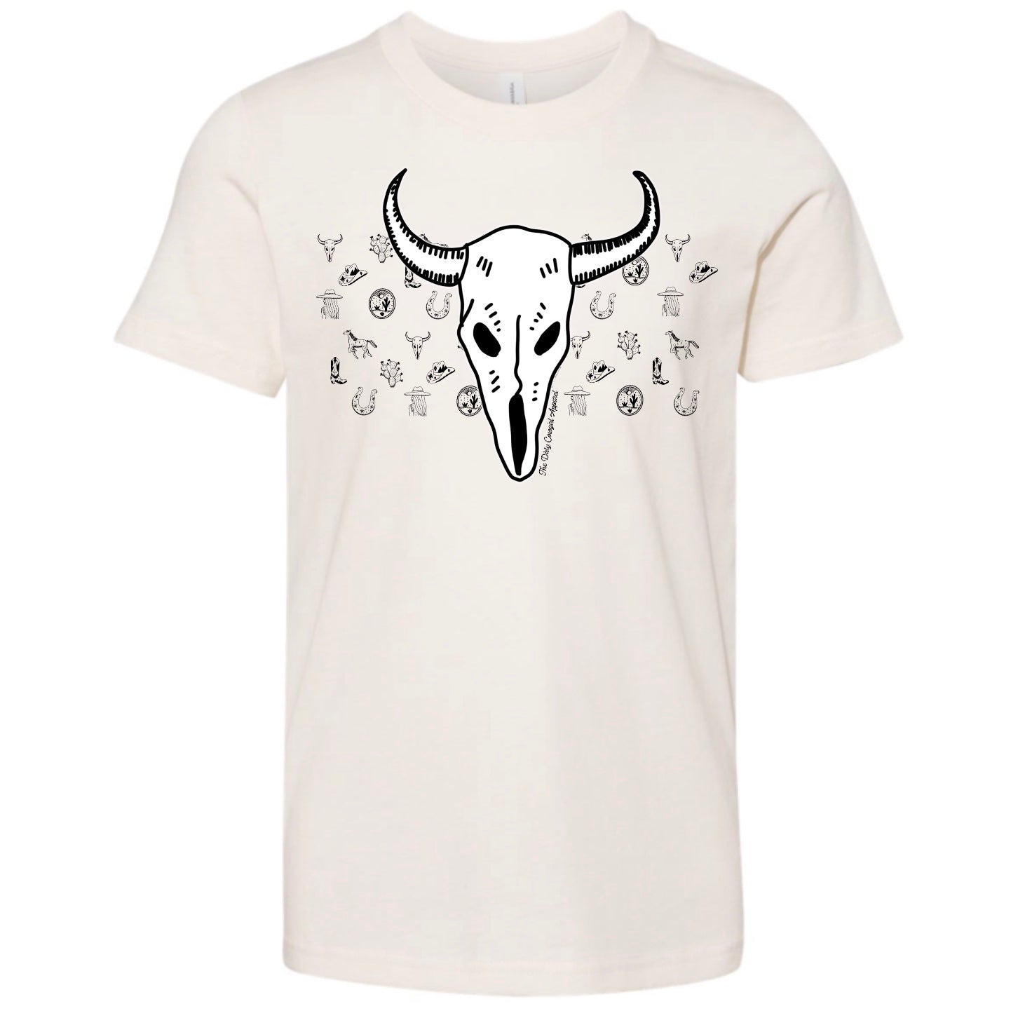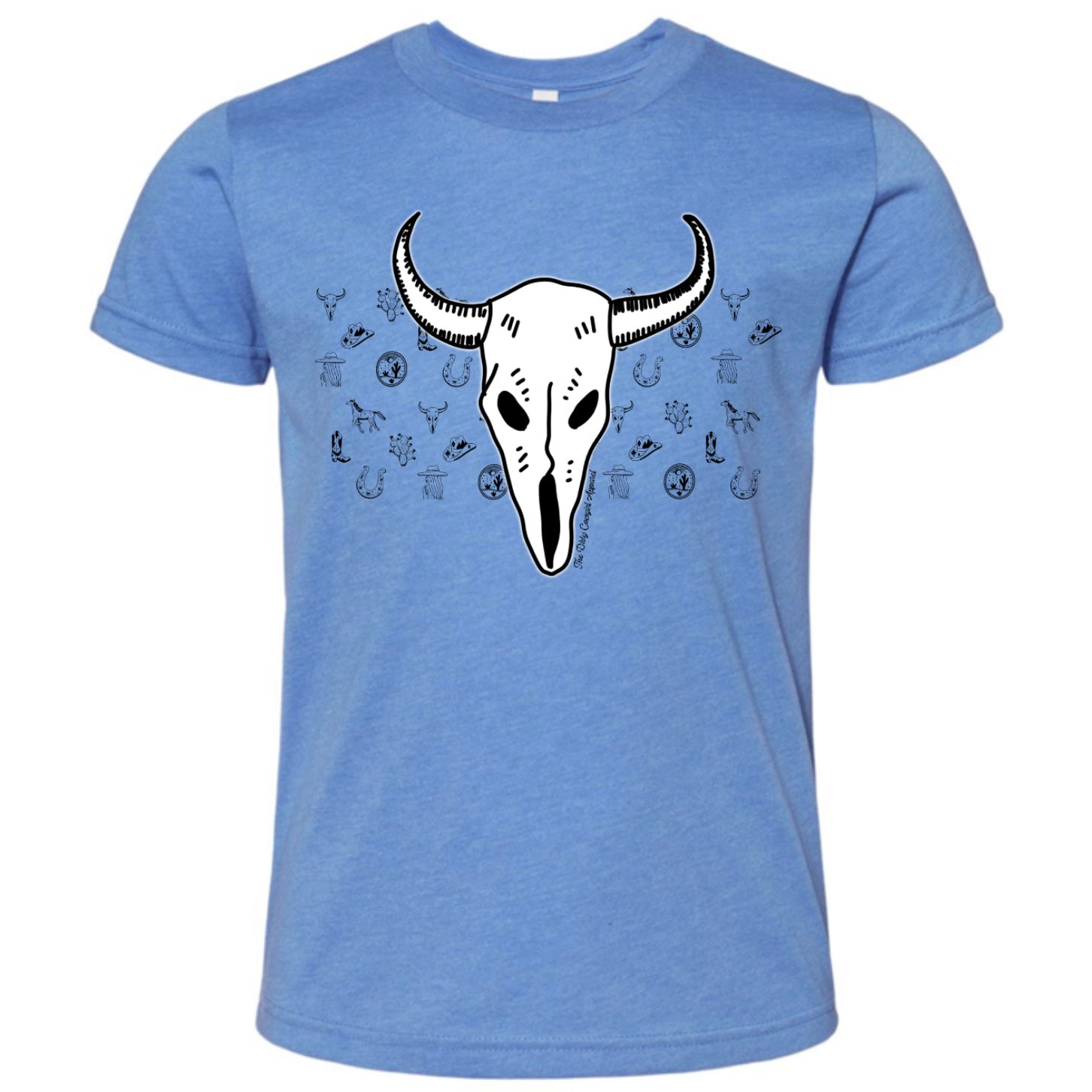 The Bison is one of the most commonly known Western Icons.. this rustic bison skull will give some edgy western flair to your kiddos closet for sure! Add this tee to your cowboy or cowgirl’s collection today!