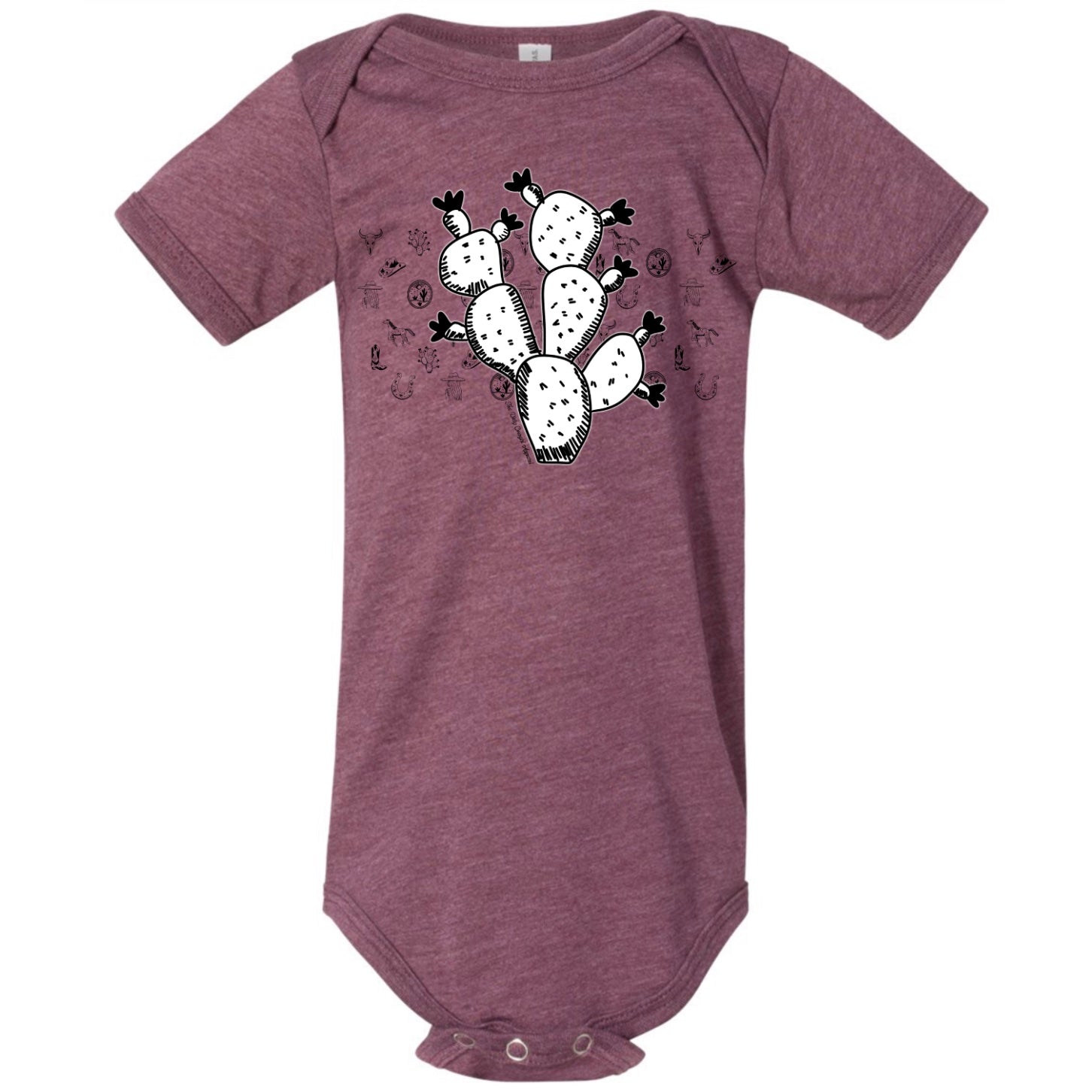 A perfect little cactus, just about ready to show off its flowers! Another wonderful onesie for you kiddos collection!