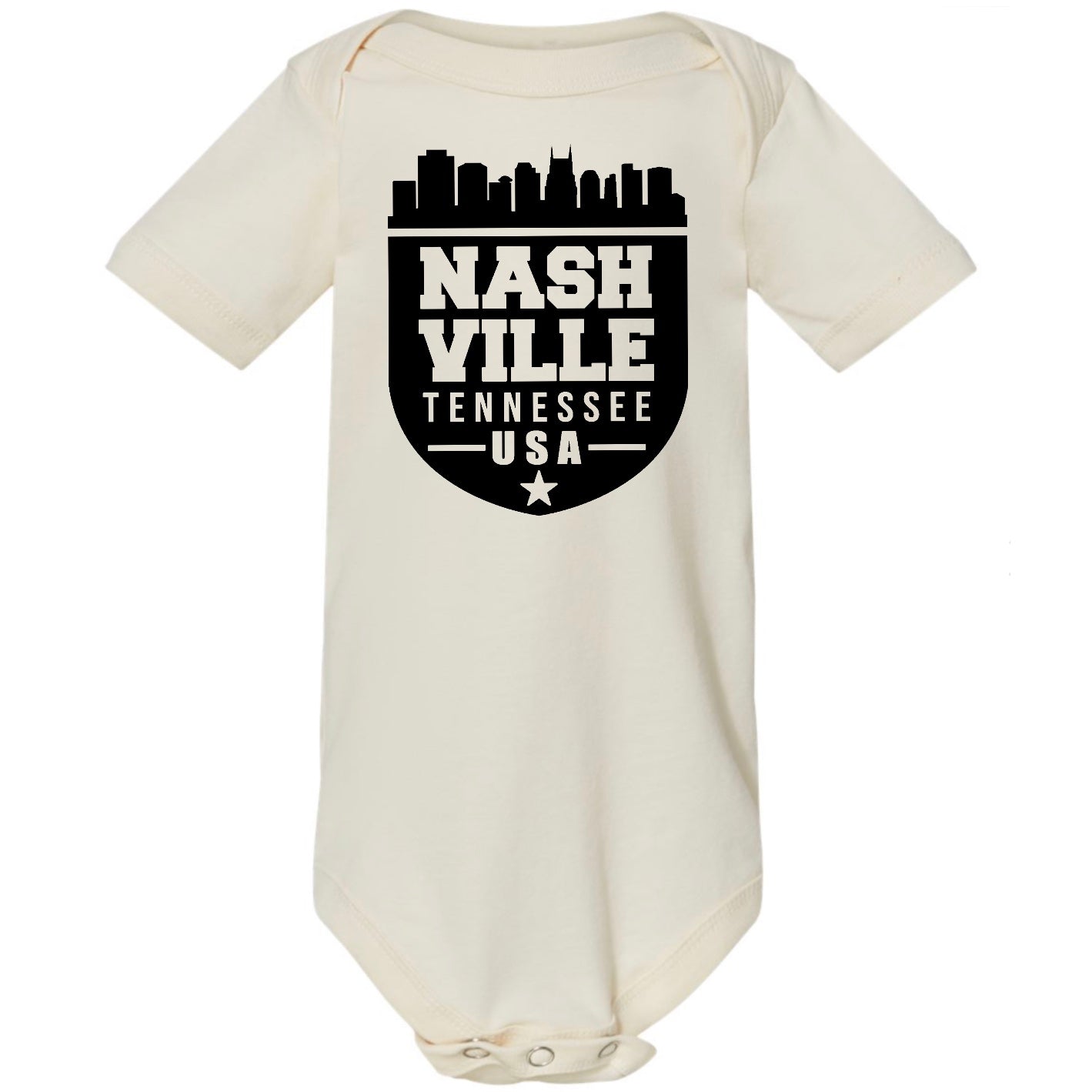 This music city skyline is perfectly set on this soft onesie. Nashville is such a beautiful city and this skyline shows it off just great!