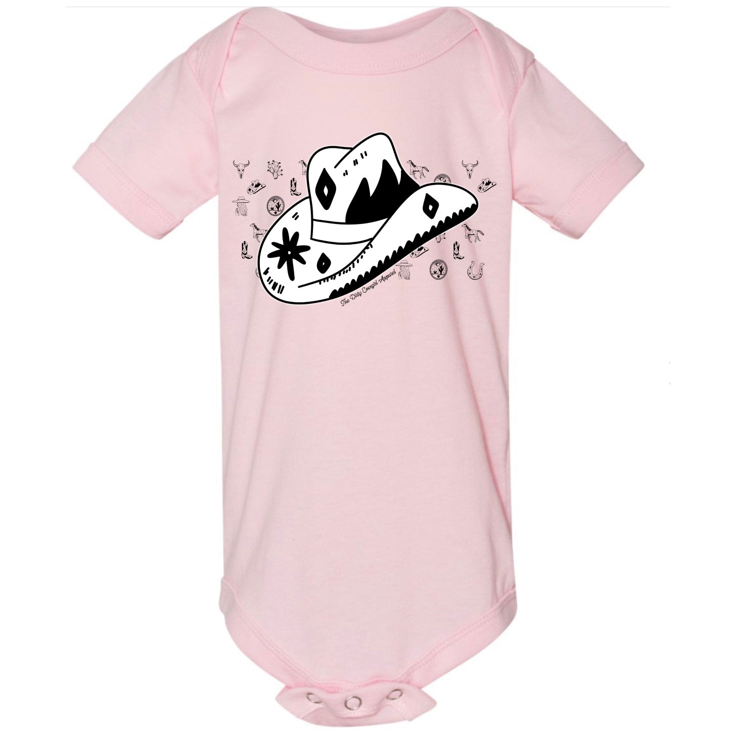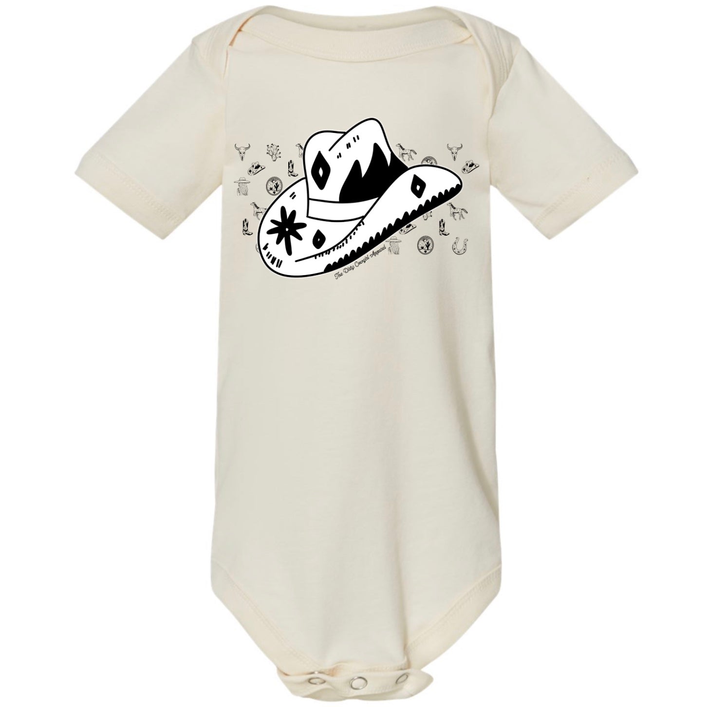 Cowboys and Cowgirls can’t go anywhere without their hat!! Add this onesie to your little cowboy or cowgirl’s collection today!